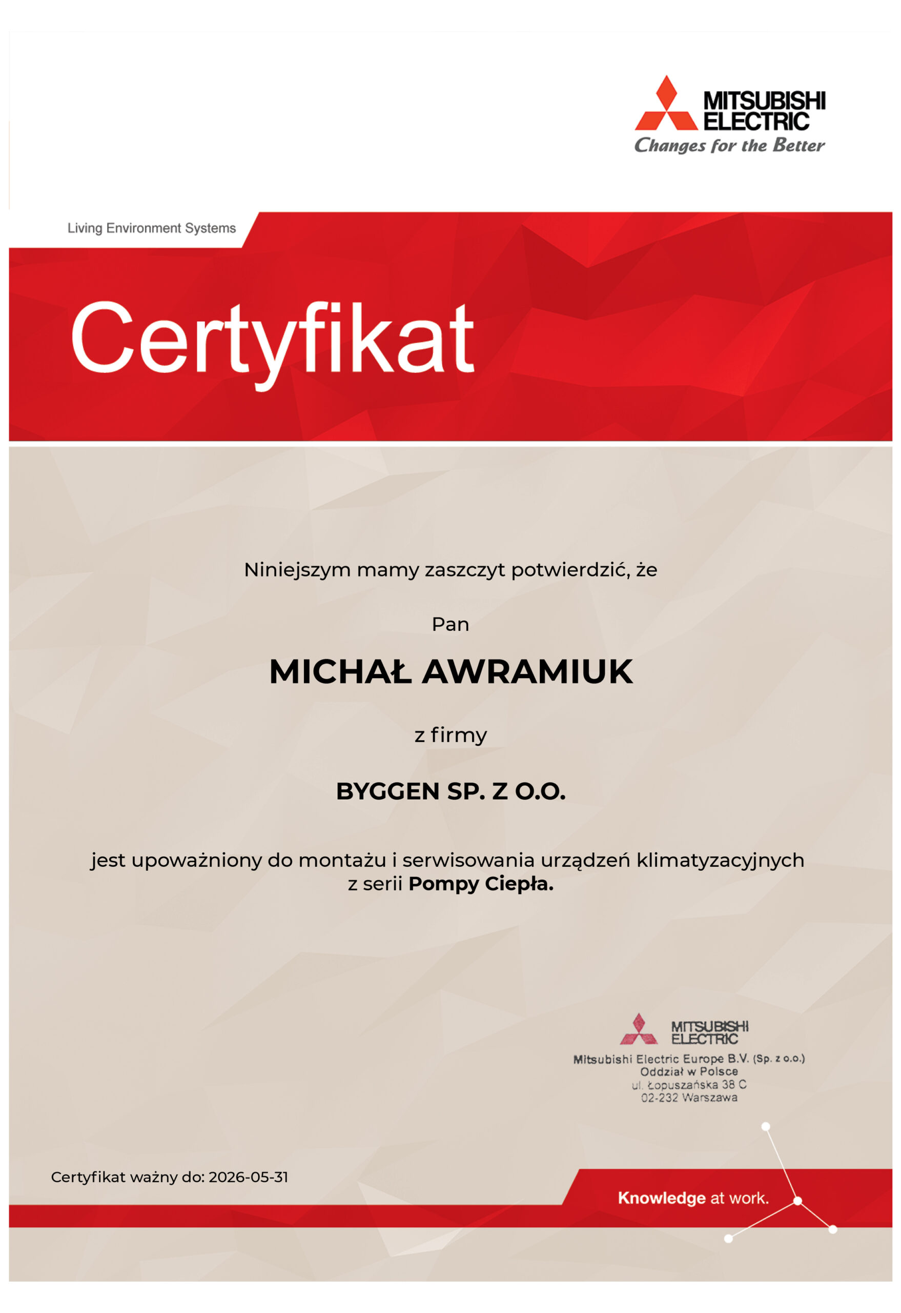 - jestem autoryzowanym instalatorem pomp ciepła Mitsubishi;