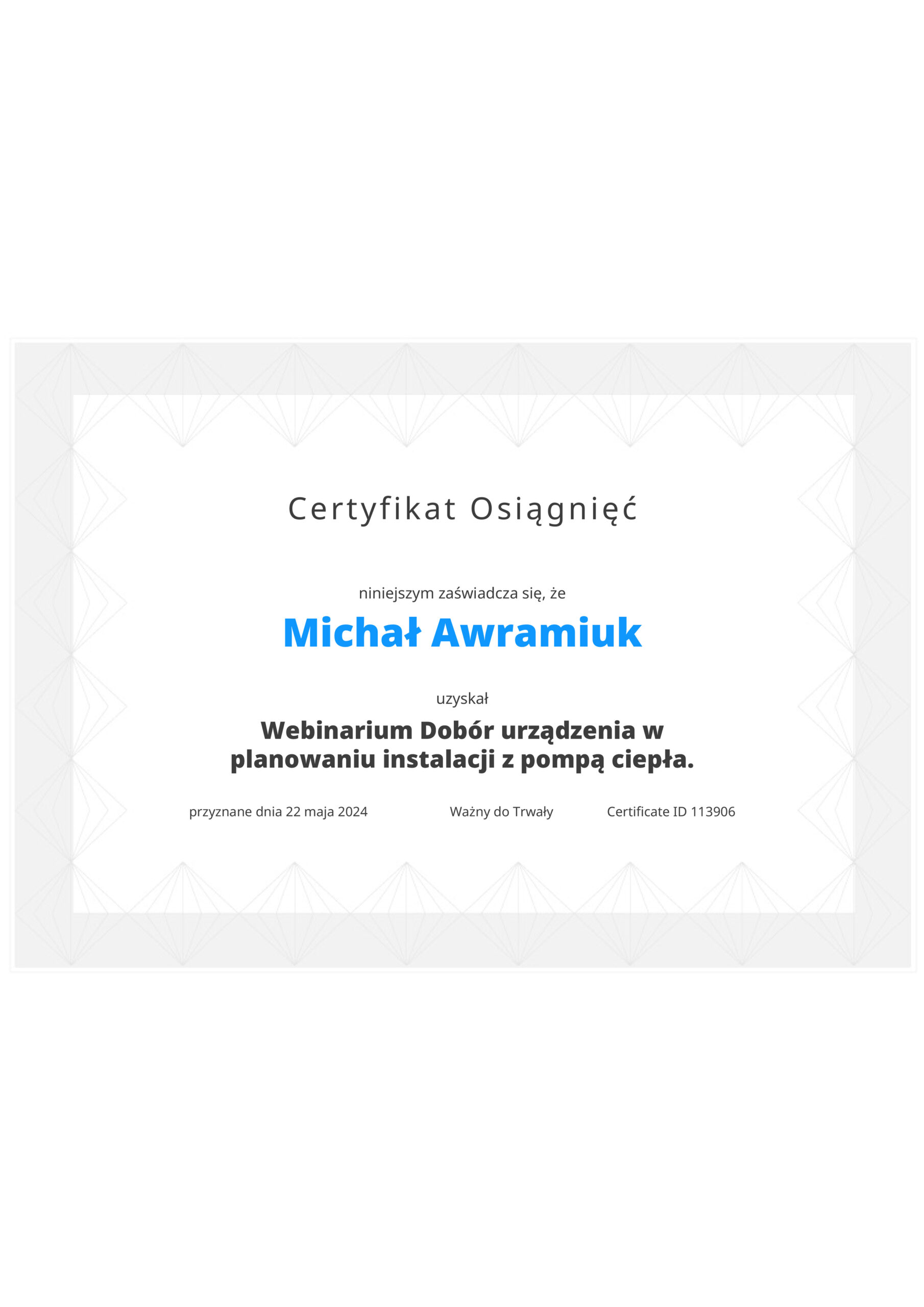 Jestem absolwentem Politechniki Białostockiej, kierunek: budownictwo. Uważam, że drogą do sukcesu jest stałe poszerzanie wiedzy i umiejętności, dlatego ciągle szukam najlepszych rozwiązań, regularnie uczęszczając na szkolenia dostawców rozwiązań instalacyjnych. Poniżej lista moich uprawnień i certyfikatów: